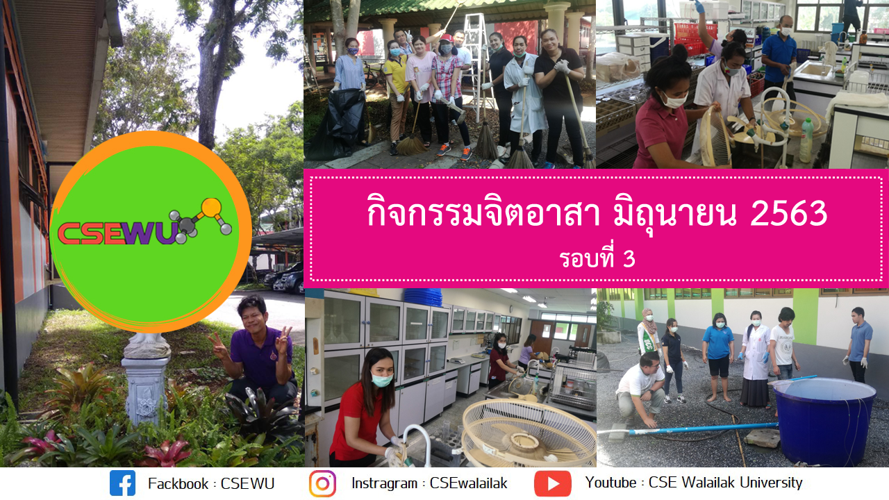 บุคลากรศูนย์เครื่องมือวิทยาศาสตร์และเทคโนโลยี มหาวิทยาลัยวลัยลักษณ์ ร่วมกันทำกิจกรรมจิตอาสา 5ส สร้างสุข ประจำเดือนมิถุนายน 2563 จำนวน 3 รอบ ดังนี้