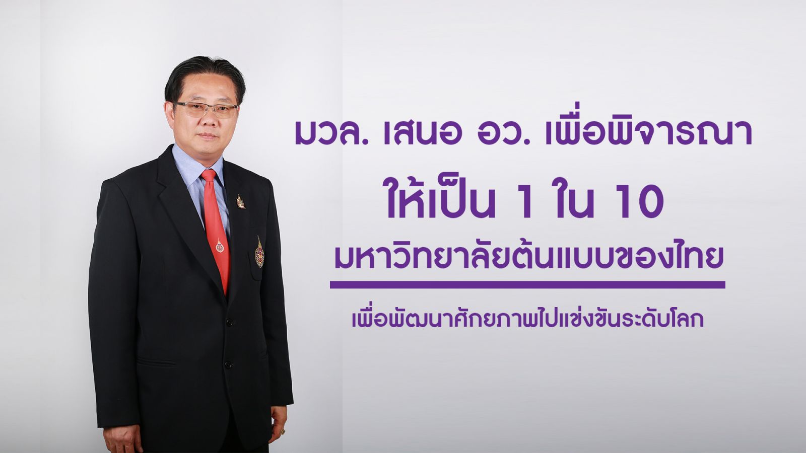 มวล. เสนอ อว. เพื่อพิจารณาให้เป็น 1 ใน 10 มหาวิทยาลัยต้นแบบของไทย เพื่อพัฒนาศักยภาพไปแข่งขันระดับโลก