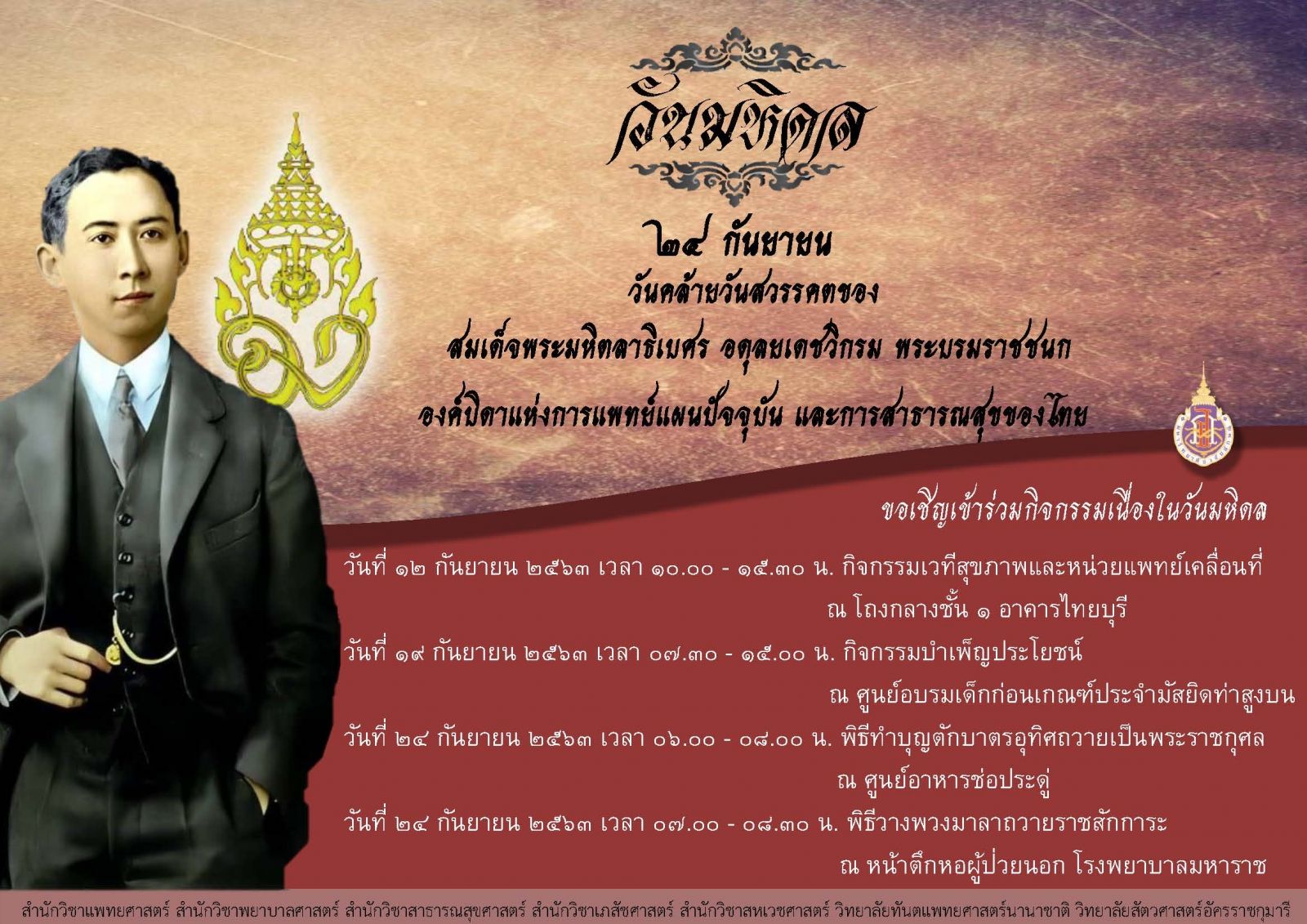 ขอเรียนเชิญเข้าร่วมกิจกรรมวันมหิดล ประจำปี 2563